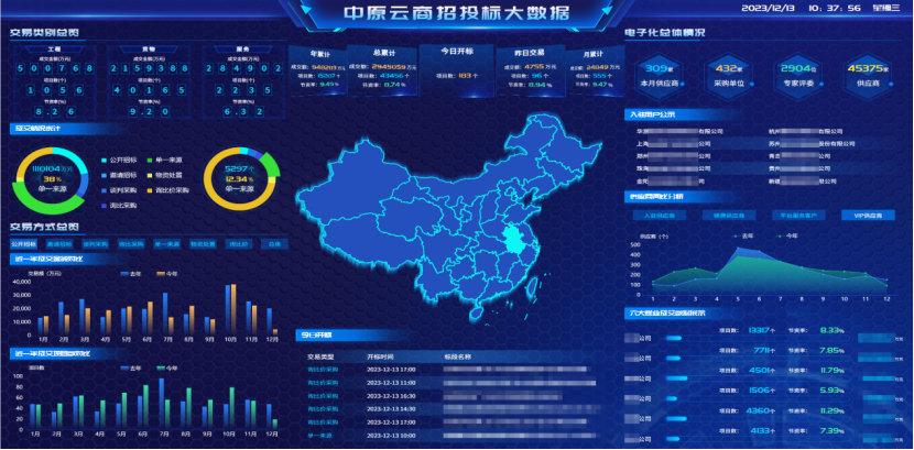成交金額、交易方式、開標(biāo)項(xiàng)目……交易走勢實(shí)時滾動,交易數(shù)據(jù)一目了然,這些變革得益于大數(shù)據(jù)技術(shù)與招標(biāo)采購的迅速融合。
