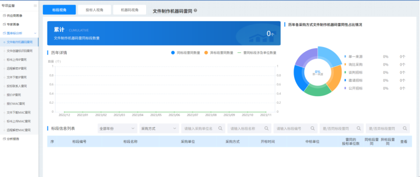 與此同時,系統(tǒng)還強(qiáng)化了數(shù)據(jù)管理應(yīng)用,以大數(shù)據(jù)分析為技術(shù)主線,構(gòu)建了串通投標(biāo)研判模型,防范化解圍標(biāo)串標(biāo)“頑疾”,構(gòu)建風(fēng)清氣正的招采環(huán)境?;诤A繑?shù)據(jù),串通投標(biāo)研判模型對圍串標(biāo)線索進(jìn)行挖掘,深度分析圍串標(biāo)行為特征,提煉招投標(biāo)關(guān)鍵字段,對主體關(guān)系、投標(biāo)價格、雷同性等多維度分析,自動生成串通投標(biāo)分析報告,確認(rèn)投標(biāo)人之間是否存在違法違規(guī)行為。