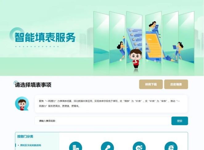 此外,智能填表服務(wù)實(shí)現(xiàn)深化數(shù)據(jù)共享,辦事人登錄智能填表服務(wù)門戶后,選取相應(yīng)的業(yè)務(wù)辦理表單,就可以自動(dòng)調(diào)取數(shù)據(jù)共享平臺(tái)中已歸集的數(shù)源信息,變“填表”為“補(bǔ)表”,變“補(bǔ)表”為“審表”。目前,已有7個(gè)部門27個(gè)事項(xiàng)加入到智能填表的大家庭,有效解決企業(yè)群眾“不會(huì)辦、需幫辦”的問題,讓企業(yè)群眾辦事更具“代入感”。